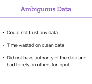 No clear understanding of the quality of the data or how much it needed to be manipulated