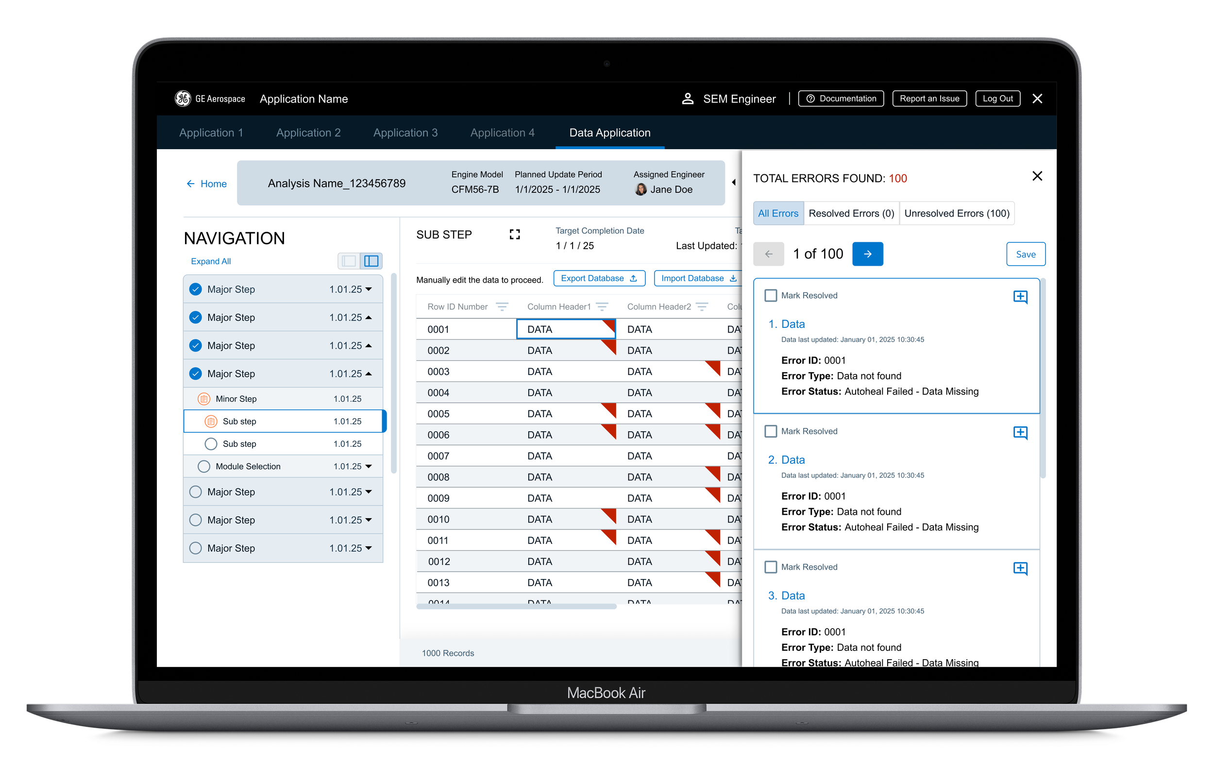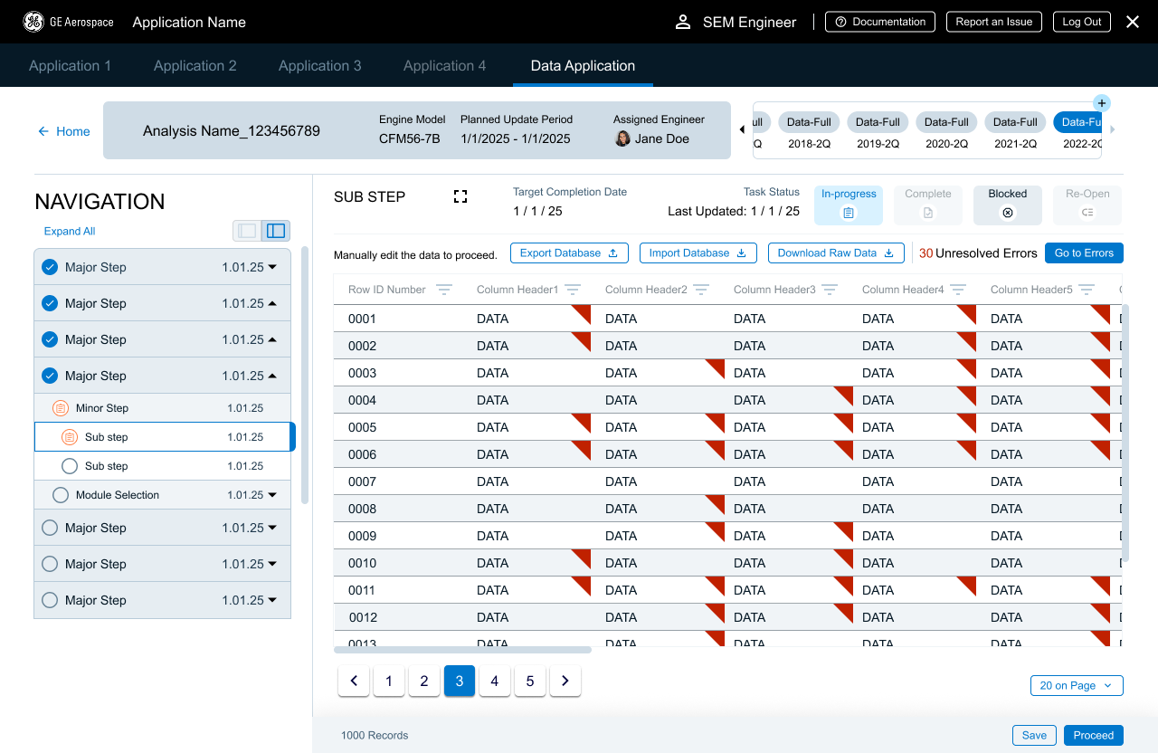 I made the call to add pagination, but to keep the errors panel available for each page. The screen space lost to the pagination component meant users couldn’t see as much data as before, so I created a full screen view that the users could switch to manually. They would lose some of the lesser navigation and features, but they could see more information at one time. I also concerns about creating potentially unrealistic expectations for error numbers, but working with the developers, we were able to jump not only from error to error, but also from page to page. This meant that we could give users information based on the entire database, rather than just one page’s worth of data.