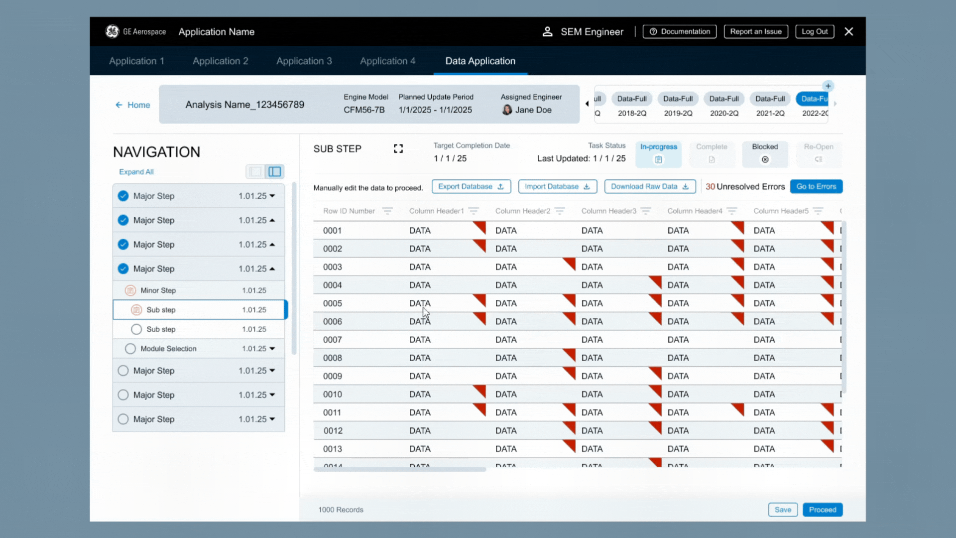 Moving from one error to the next manually could lead to missed cells and that’s bad, so the system had to track interaction. I also didn’t want users to get bogged down by going back over the data that the system had already designated as correct - they needed to focus on the things they should change and needed to change. It also needed to be unobtrusive if users were just using the data as reference and were not intending to manipulate it.