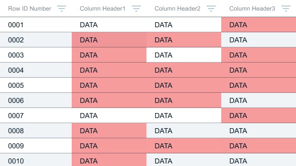 All the red blocks overwhelmed users and removed the benefits of the striped rows in the design system