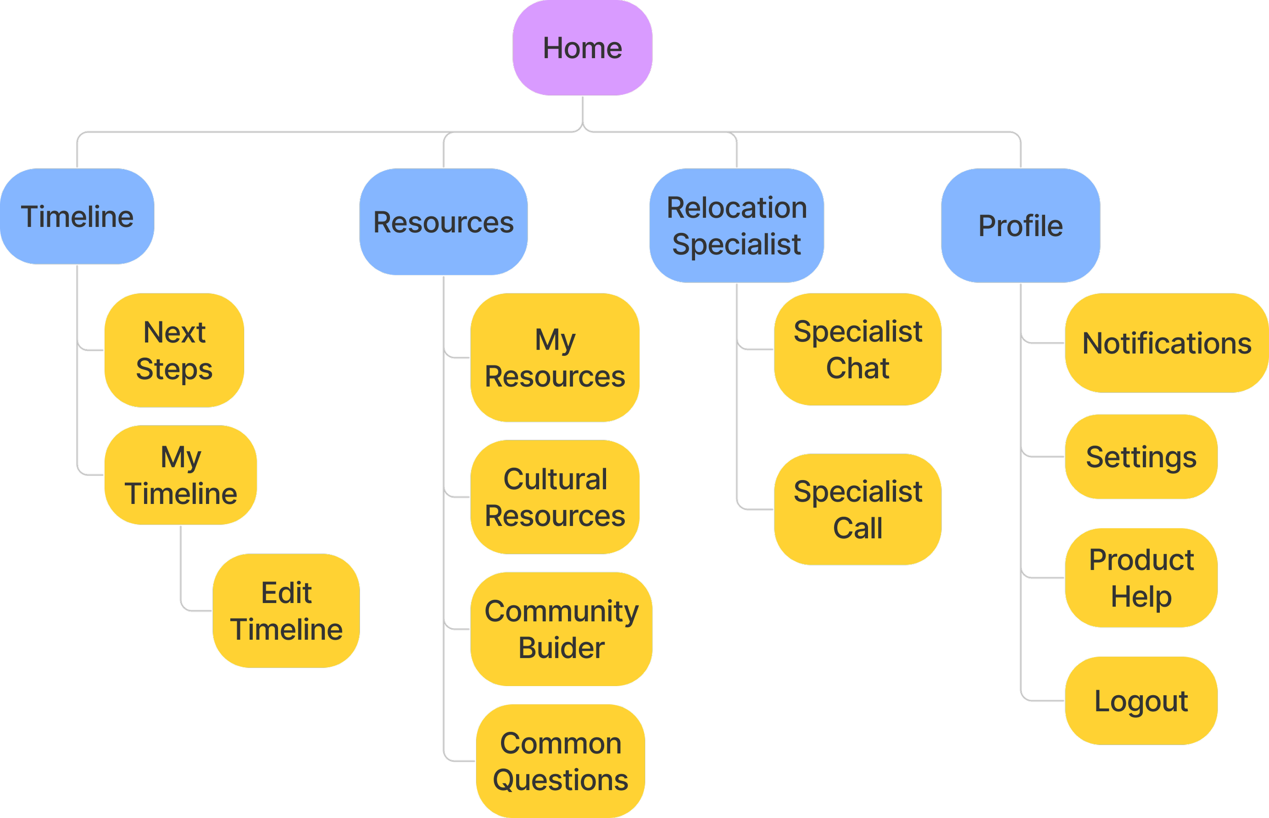 Having a strong understanding of what practical functions were needed helped me prioritize and organize the architecture of the app. From here, I went on to create the site map so I would have a better understanding of the key functions and how they interacted with each other.