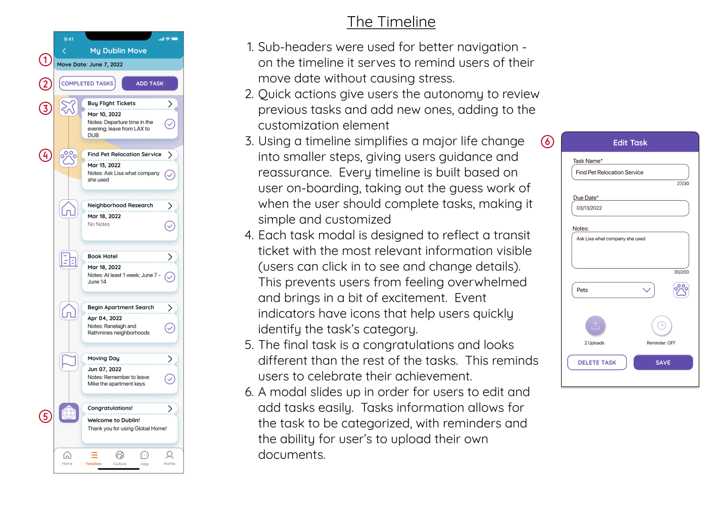 By breaking the move into smaller, clearly defined, timeline tasks users have a clear understanding of what needs to be done and when it needs to be completed. There are multiple ways for users to double check information and review completed tasks.